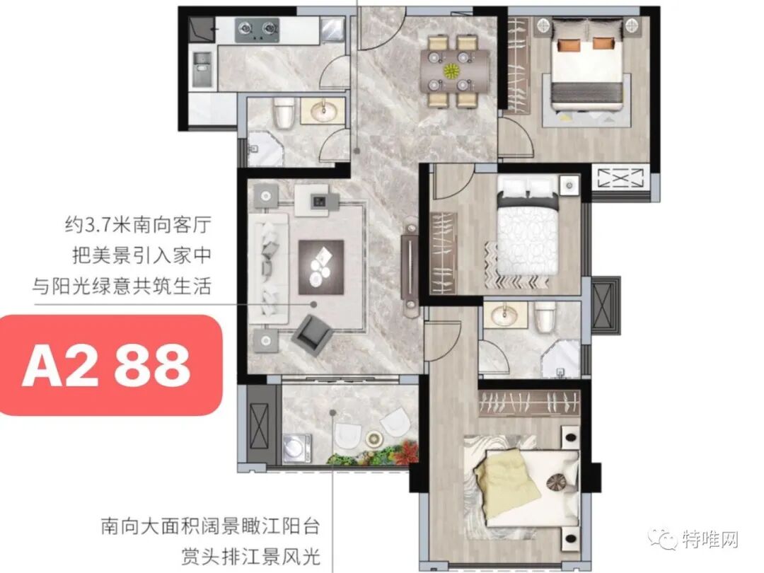 项目在售80㎡三房两卫,实用80㎡; 89㎡四房两卫,实用89㎡  0公摊 高利用率